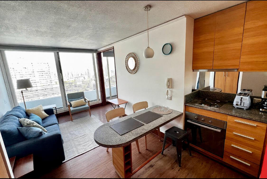 Welcome to your home away from home! This bright one-bedroom apartment in central Santiago offers comfort and convenience. Just 10 minutes from metro stations, shops, and restaurants, it’s ideal for exploring the city. Enjoy a cosy bed, free WiFi, and air conditioning for heating and cooling. The modern, secure building has lifts and a 24-hour concierge. Close to Santa Lucía Hill, La Moneda Palace, Lastarria/Barrio Italia, and the Central Market. Book now and enjoy Santiago!