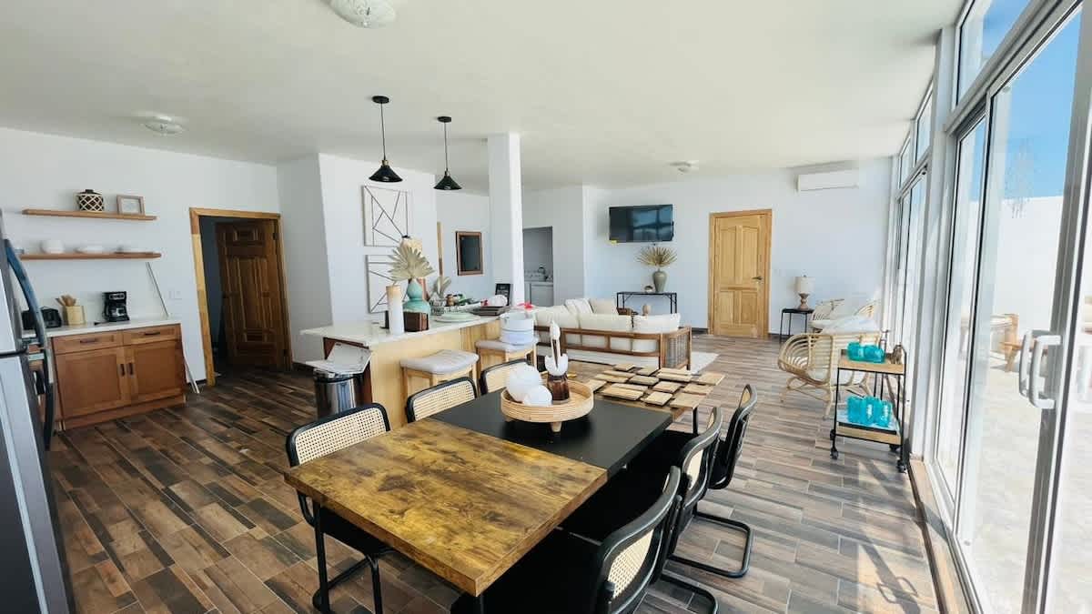 Nuestro hogar único está situado en la playa en una cala privada solamente 1.5 millas de la zona céntrica San Felipe. Disfruta de la cercanía manteniendo la privacidad y la tranquilidad junto a la playa. Nuestra suite es buena para familiares, parejas y amigos. Nuestra suite respetuosa con el medio ambiente ha estado en proceso durante muchos años y finalmente ha llegado a buen puerto. ¡Disfruta de la electricidad con energía solar sin ningún inconveniente para ti! Nuestra dulce cala ha sido disfrutada por nuestra familia durante años, ¡regocija en nuestro pequeño pedacito de cielo! ¡ No se admiten mascotas!
