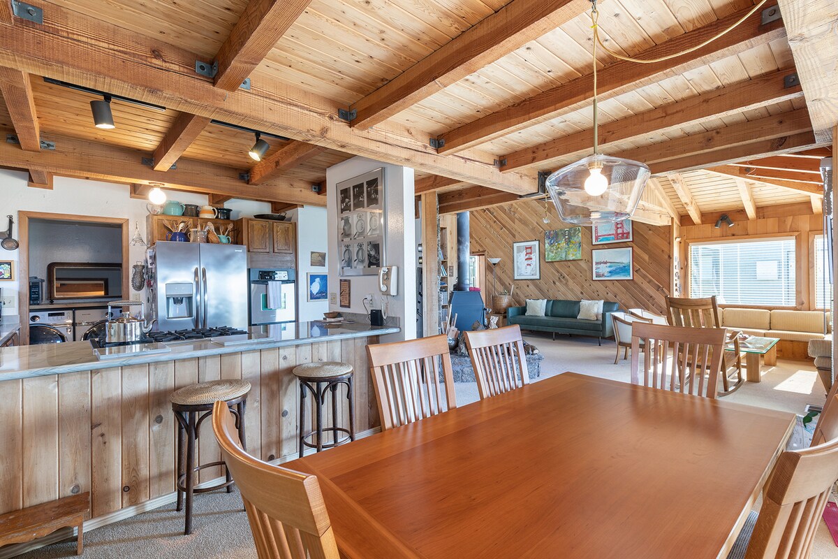 Ubicado en las colinas de Inverness con vistas a la bahía de Tomales, este refugio tranquilo se siente como tu propia casa del árbol privada. En el interior, vas a encontrar espacios acogedores: dos dormitorios en la planta baja y un baño completo, además de una tranquila suite principal en el segundo piso con balcón privado. La amplia terraza ofrece impresionantes vistas a la bahía y a la colina de West Marin. Lo mejor de todo es que estás a 5 minutos a pie del centro de la ciudad y de la biblioteca, lo que facilita la exploración de Inverness y Point Reyes National Seashore.