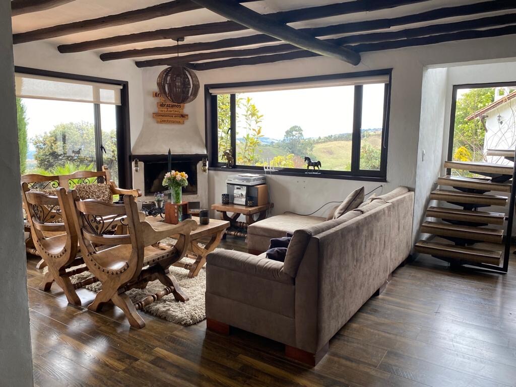 CASA QUINTA CAMPESTRE. Con 4 habitaciones, 3 baños, sala comedor, cocina, 2 balcones con una vista espectacular y con hamacas. Tiene 2 chimeneas. Está totalmente amoblada, con parqueadero de 4 carros y gimnasio. Así mismo, en la parte externa está localizado un Jacuzzi con agua caliente y BBQ cubierto, con estufa de leña y su lavaplatos. El clima es cálido, un promedio de 20º. Es una casa muy hermosa y amplia, me encantaría saber de ti y resolver las dudas que puedas tener.
