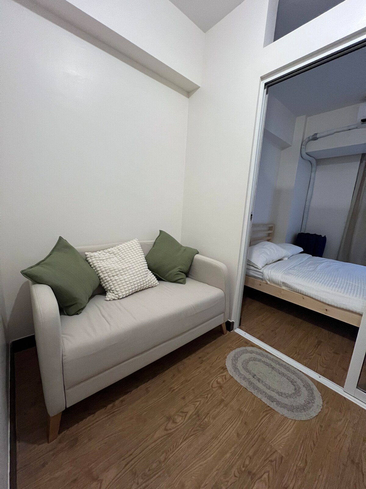 Este espacioso y acogedor dormitorio está diseñado para tu máximo confort y relajación. Disfruta del encanto de nuestra acogedora unidad. ¡Tu hogar lejos de casa! - Kit de higiene y artículos de aseo de cortesía para los huéspedes. - Utensilios completos de cocina y vajilla. - ¡Puedes cocinar! Ubicación: Palmridge Tower, Rochester Garden, San Joaquín, Pasig. - A 5-10 minutos de SM Aura, BGC y Market2x. - A poca distancia a pie de todos los establecimientos. - A 15-20 minutos del Aeropuerto Internacional de Manila. Acceso a la piscina 200/persona.