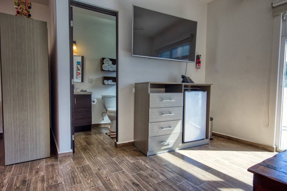 comoda y confortable habitacion con baño privado, en zona centro de cabo san lucas, a 9 calles de la playa, espacio completamente nuevo y diseñado a mano por su propietario. Contamos con comercios cercanos como pescaderia, restaurant, almacen de abarrotes, panaderia y fruterias y verduleria. Zona muy tranquila y segura. Quédate en este lugar único ubicado en pleno centro y no te pierdas nada.