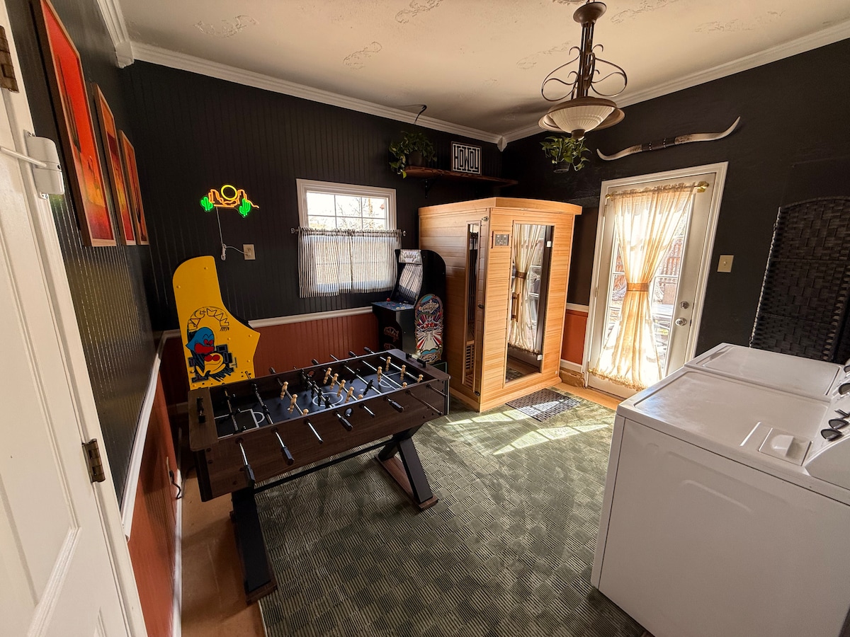 ¡Bienvenido a Highland Hideaway, un refugio totalmente remodelado y bellamente decorado diseñado para la comodidad y la diversión! Esta impresionante casa de estilo Highland cuenta con una sala de juegos adicional con un bar y dos máquinas de pinball, perfecta para el entretenimiento. Relajate en el acogedor salón, cociná en la cocina moderna y disfrutá de cada detalle. Ya sea que estés acá para relajarte o para pasarla genial, este alojamiento es la escapada perfecta. ¡Reserva ahora y experimenta por tu cuenta!