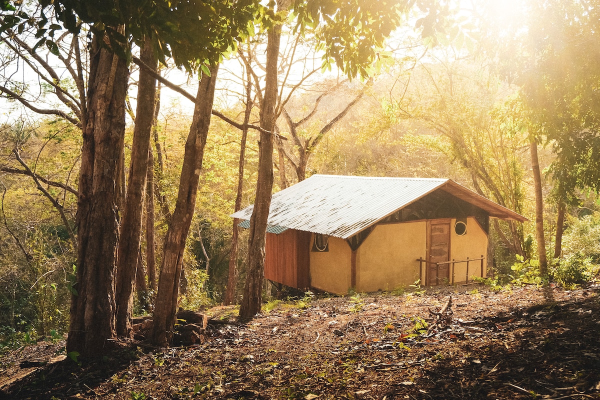 Casita en la selva en 15 acres privados a 5 minutos del océano