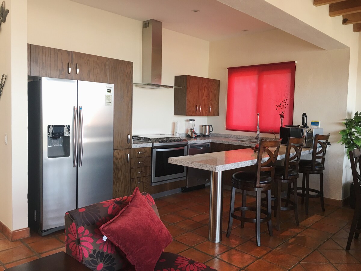 Private paradise two bedroom home located in a quiet and peaceful residential area in San Miguel “Villa de los Frailes”. - Housekeeper 1 day/week - Private heated pool and gym - Office - Indoor Garage (Electric Door) - BBQ > 6min drive to City Market/La Comer > 15min drive to La Parroquia > 0.5 miles walk to “Unidad Deportiva municipal” * FREE Pickle-ball, Squash,Tenis, Soccer, Basketball,Box, Running Track One Dog under 16 lbs (7 kg) is welcome (additional pet fee applies)