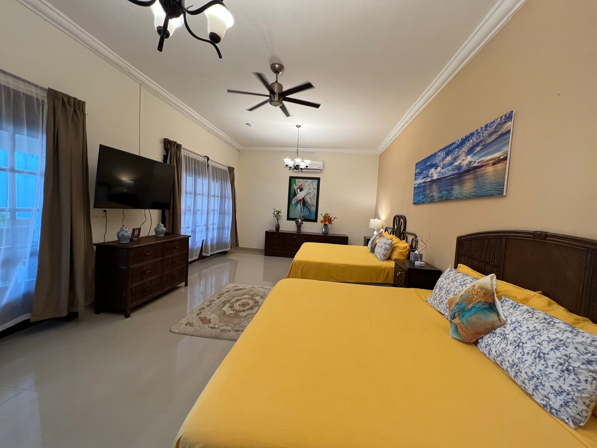 Amplia suite con cama tamaño king, 2 baños completos, cocina y sala de estar, sofá cama extraíble, aire acondicionado mini split. Ubicado cerca de la costa en la ciudad y cerca de excelentes restaurantes. Se proporcionan servicios de conserjería completos, así como desayuno completo opcional por $ 6. Mucho espacio en el salón de la zona común, incluida la terraza en la azotea. Estaremos encantados de ayudarte a organizar viajes de buceo durante tu estadía con nuestro operador de buceo aprobado.