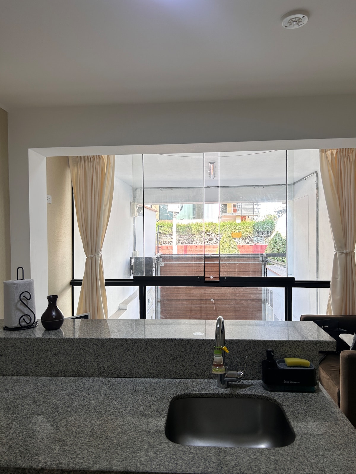 Dpto moderno full amoblado, ideal para largas estancias. Cuenta con Wi-Fi de alta velocidad, Smart TV 65” con Netflix y Disney+, cocina totalmente equipada con cafetera espresso, filtro de agua, lavaseca, cama dos plazas rosen y balcón. Edificio con piscina, coworking y gym. Autocheck-in 24/7, smartkey, estacionamiento gratuito y seguridad 24h. Ubicación estratégica en San Miguel, cerca de universidades, centros comerciales y a menos de 20 min del aeropuerto.