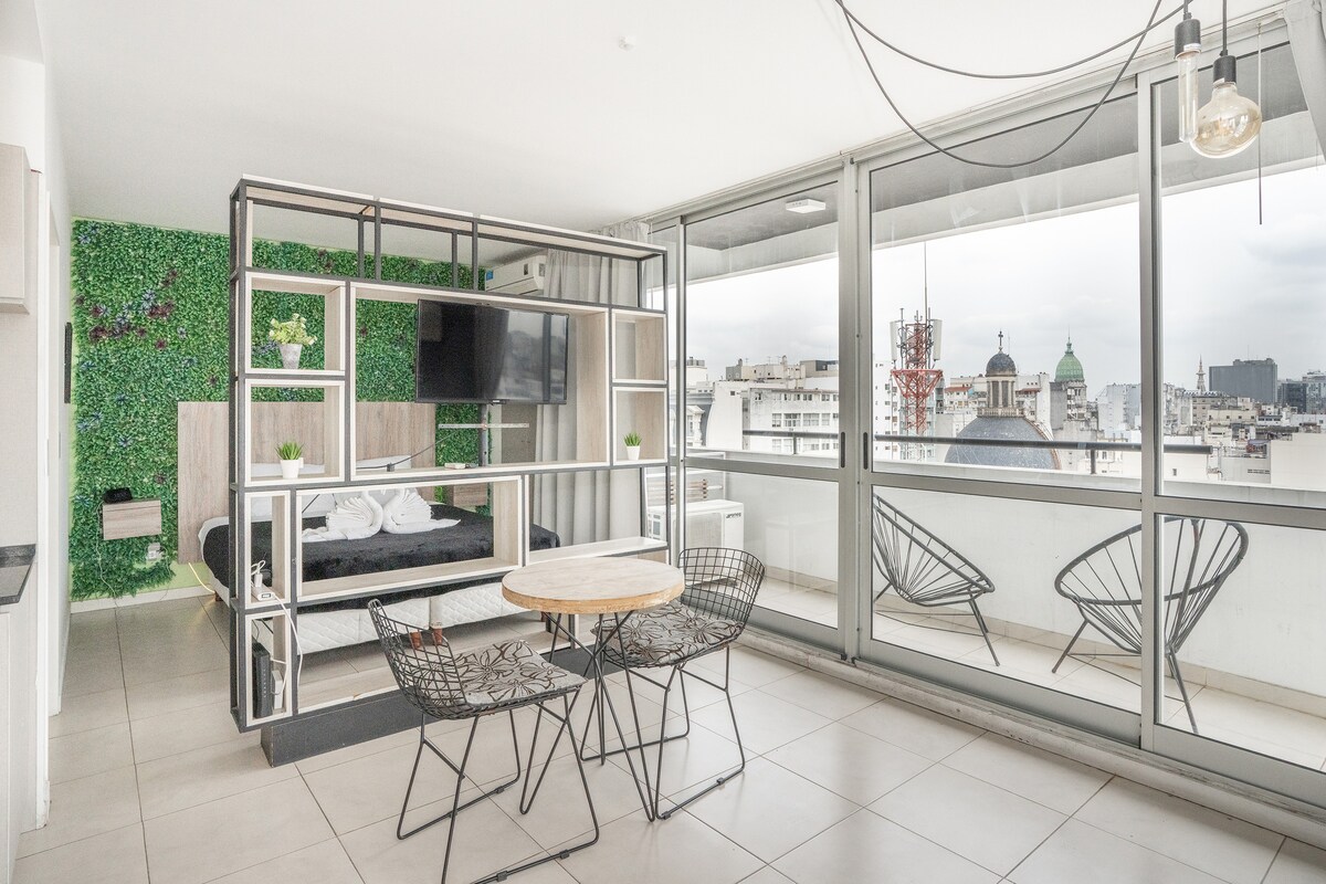 Hermoso estudio de diseño totalmente reciclado y equipado a nuevo con una vista única de las antiguas cúpulas de la ciudad. Situado en el centro antiguo de Buenos Aires, zona de gran patrimonio histórico, cultural, arquitectónico y a tan solo 300 metros del Obelisco, el alojamiento es ideal para quienes viajan por turismo o trabajo. Al estar en una zona céntrica y tener conexión con los principales medios de transporte, es ideal para recorrer los principales puntos turísticos de la ciudad.