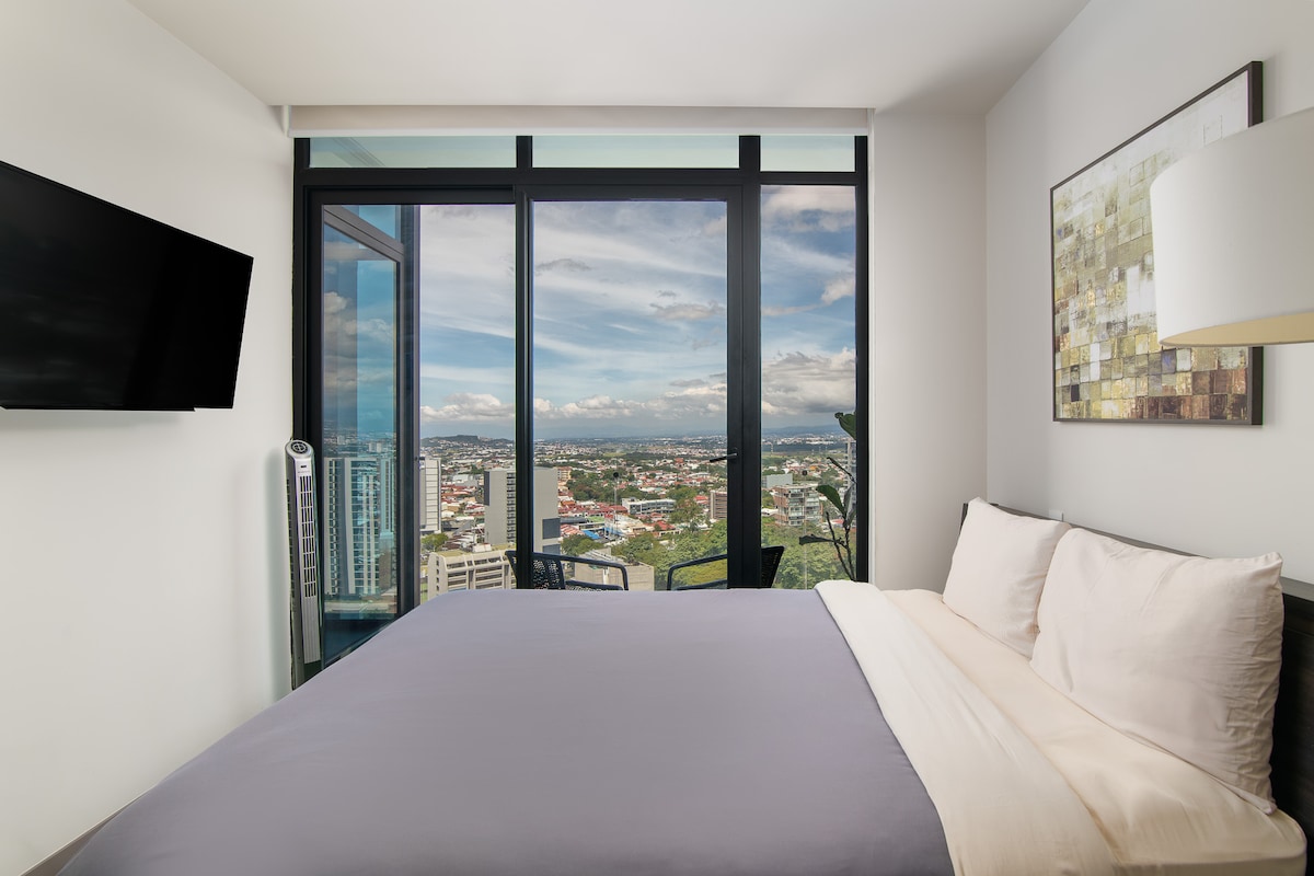 🌟 Stunning & Spacious 1BR/1BA Condo! Perfect for medical tourism, remote work, business, or family stays, in the most exclusive area of Escazú! Enjoy breathtaking Central Valley & mountain views 🌄, just minutes from Multiplaza Mall, top dining, pubs, shops & artisanal cafés. 🚗 Private parking, 24/7 security, elevator & stairs. Plus, relax with a pool, gym & lightning-fast 100Mbps WiFi! 💻🏊♂️💪 Cozy comfort & convenience—experience it all and leave your journey with us !- AC in master BR ✨