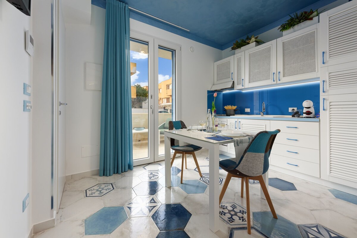 Nuevo estudio a pocos pasos del mar y del centro. Situado en el primer piso de Casetta Maremè, «MAREME'SU» dispone de una encantadora terraza para pasar momentos relajantes. Al estudio se accede por una escalera compartida con el apartamento de al lado, el único espacio compartido. Encontrarás una zona de cocina con placa de inducción y posibilidad de preparar el desayuno, cama de matrimonio y baño con ducha. Ideal para una pareja con un niño pequeño.