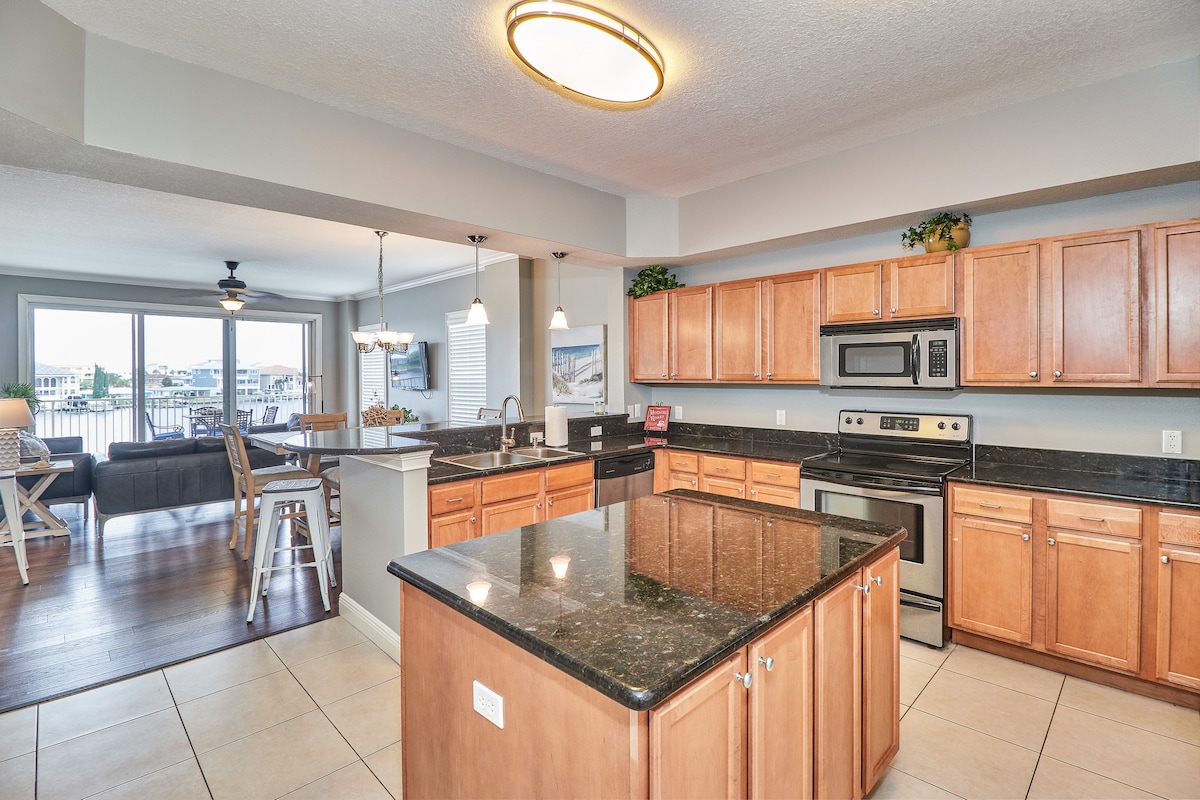 Despiértate con impresionantes vistas al mar en este lujoso condominio intercoastal 3BR/2BA, ¡a solo unos pasos de Clearwater Beach! Observa a los delfines desde tu balcón privado, relájate en la piscina o en el jacuzzi y disfruta de una amplia cocina perfecta para comidas familiares. Camina hasta playas de arena blanca, restaurantes de 5 estrellas y atracciones locales, cerca de la acción, pero tranquilamente escondidas. Decoración moderna, 1650 pies cuadrados de comodidad y puestas de sol inolvidables te esperan. ¡Reservá tu escapada a la playa ahora! :)