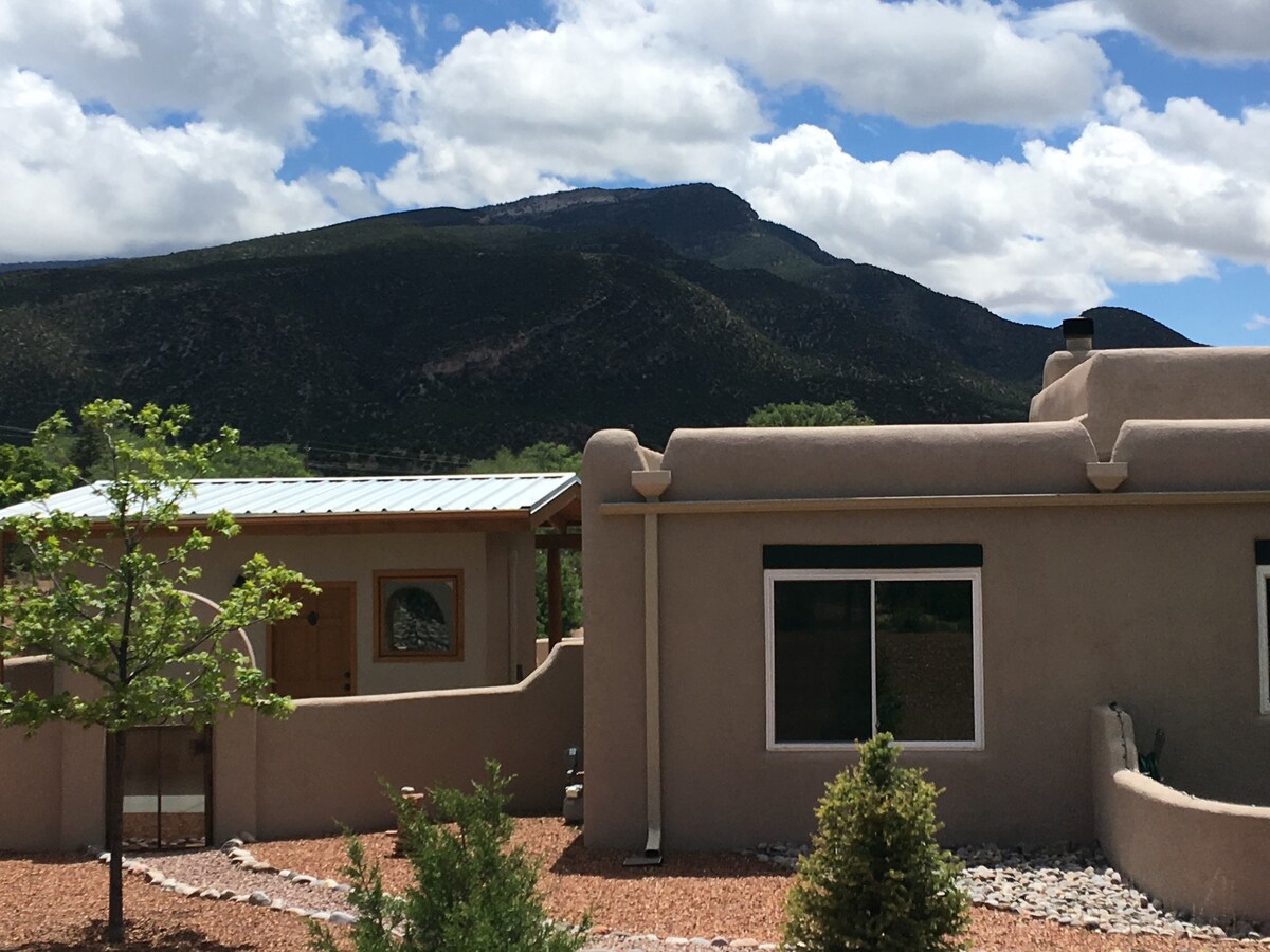 Acogedora casa de huéspedes para 2 personas en el corazón del pueblo de Jemez Springs. Camina hasta aguas termales, baños históricos, galerías de arte, mercado semanal de agricultores y restaurantes. La habitación llena de luz ofrece vistas a las mesetas. Detrás de la casa de huéspedes hay un pequeño sendero natural circular con lugares tranquilos para sentarse, meditar, escribir o pintar. Tus anfitriones viven en una casa histórica en la propiedad (una vez el hogar del autor nativo americano, N. Scott Momaday) y están disponibles cuando sea necesario.