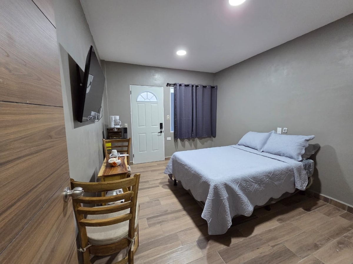 Ven a Hostal Las Puertas a disfrutar de un ambiente tranquilo y acojedor, sientete como en casa fuera de tu casa en nuestras habitaciones preparadas pensando en tu comodidad. HABITACION DOBLE 1 cama doble grande. Vistas al jardín TV de pantalla plana Aire acondicionado Baño privado WiFi gratis Canales por cable Plancha para ropa Zona de estar Ducha Artículos de aseo gratis Zona de cocina Nevera Microondas Cocina Zona de comedor Utensilios de cocina Horno Tostadora Cafetera