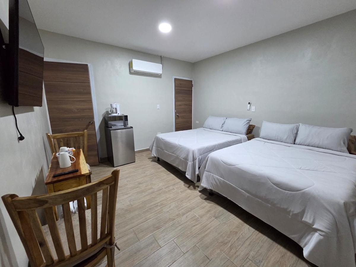 Enjoy a comfortable, convenient stay in the historic center of Santa Ana in this Shared room for 4 people. Ideal for families, friends, or travelers looking to relax in a quiet, rustic setting after exploring the city and its surroundings. The room features two comfortable double beds, a clothes rack, and access to a shared bathroom and showers, always clean and equipped for your convenience. Please note that the price shown is per person.