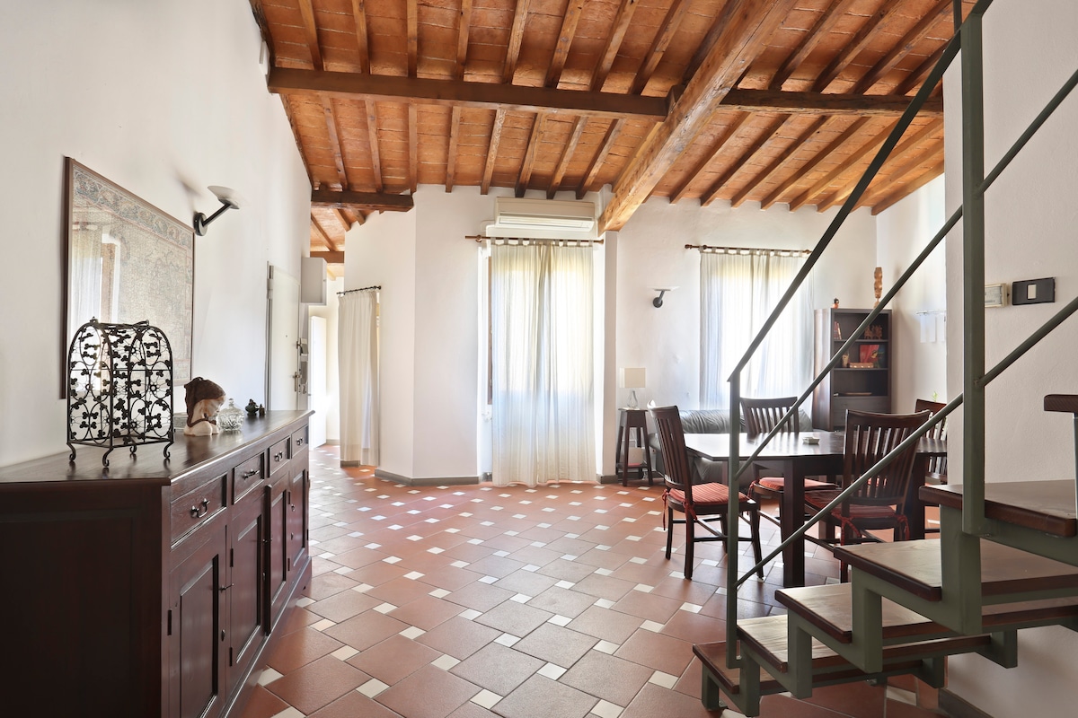 Situado en el animado barrio de San Ambrosio, a pocos pasos del Duomo y Santa Croce, el apartamento es de estilo florentino, con parqué, vigas a la vista, con vistas a los tejados y 2 agradables chimeneas. Tiene 2 dormitorios, cocina, wifi, aire acondicionado. Puede alojar hasta 4 personas. Como casi todos los edificios antiguos, no hay ascensor, pero una vez que lleguéis estarán rodeados de un ambiente íntimo y romántico, realmente único.