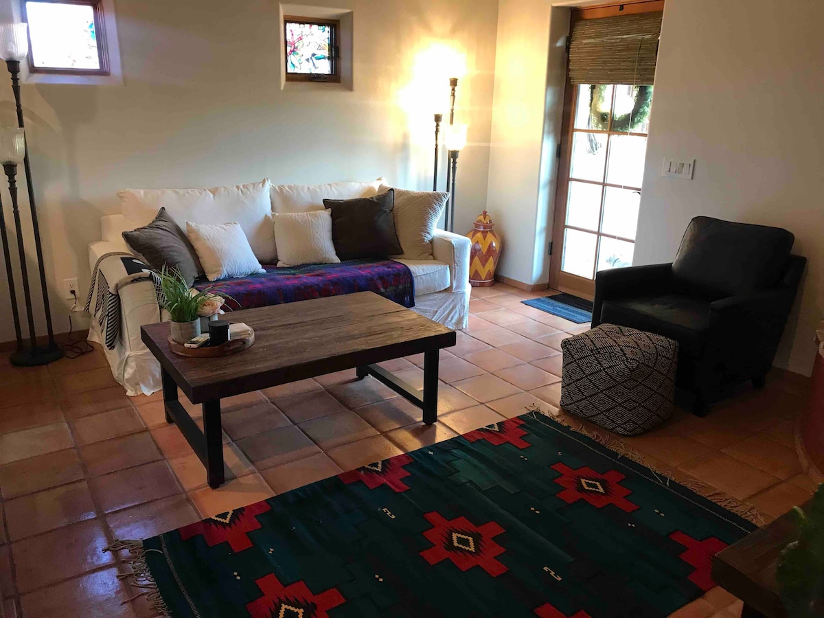 Tu propia casita con cama tamaño queen y baño contiguo ubicada a 45 minutos al sur del Aeropuerto Internacional de Tucson, a 10 minutos a pie del centro del encantador e histórico pueblo de Tubac y a pocos pasos del sendero Anza para practicar senderismo y observación de aves. Con patio adyacente para tu uso exclusivo y una entrada privada, tu casita será la «sede» perfecta para tu visita al sur de Arizona o un gran lugar para alojar a tus invitados «desbordados».