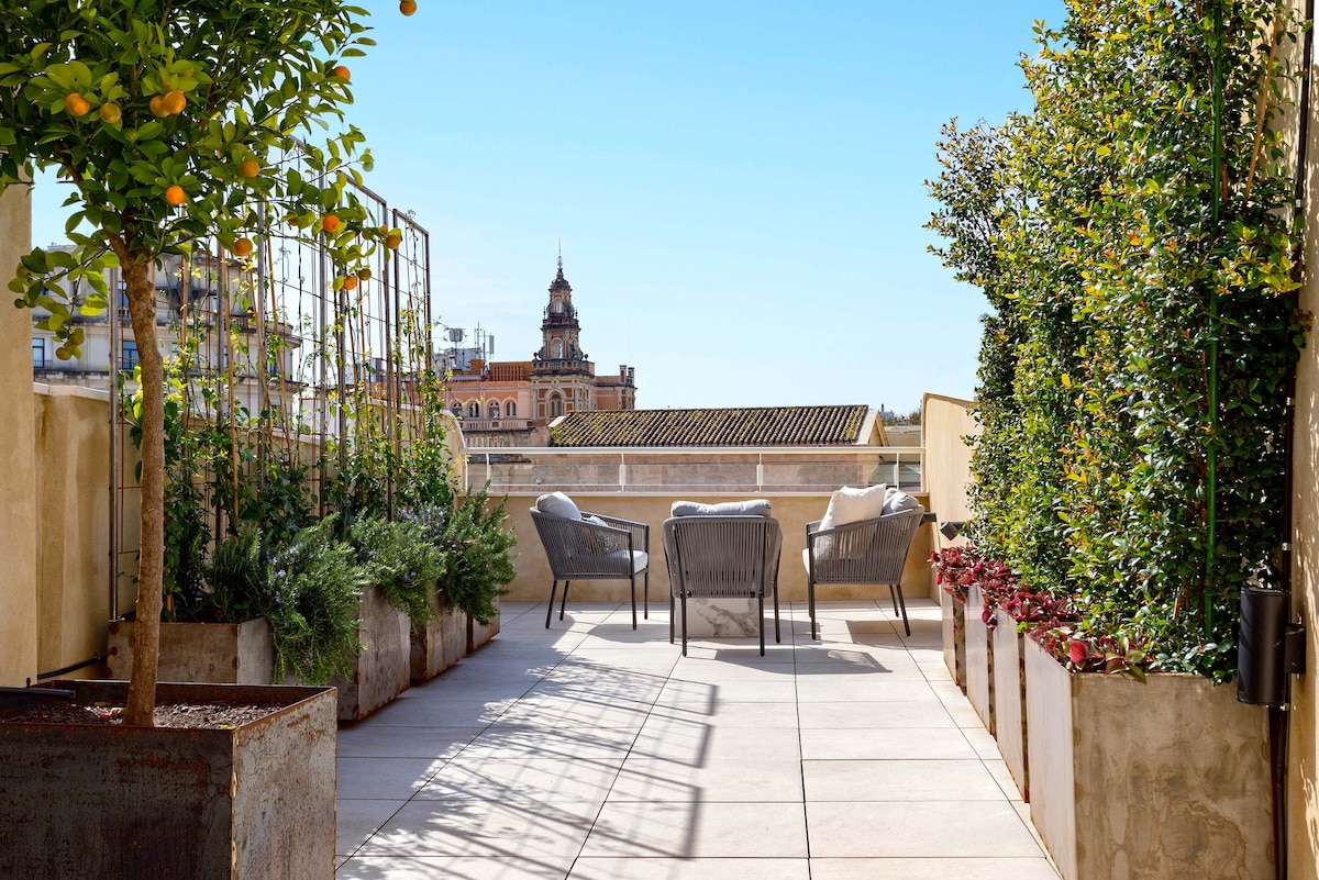 Magnifico ático en edificio de reciente construcción con altísimas calidades, mobiliario de diseño y 2 terrazas privadas con vistas privilegiadas de la Catedral. Ubicado en el corazón de Sevilla, a sólo unos metros de la Catedral, Giralda, y el resto de monumentos de la ciudad. El apartamento es tipo estudio muy amplio, consta de cama Queen size, salón-comedor, 1 terraza con comedor exterior y otra impresionante terraza con sofá, ducha y tumbonas. Las vistas son inmejorables.