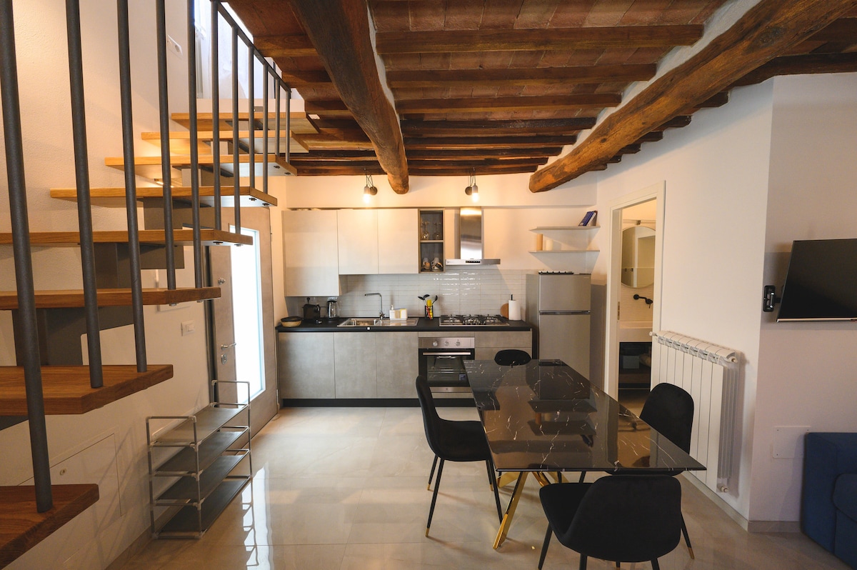 La casa se encuentra en el corazón del centro histórico medieval de Abbadia S. S. Distribuida en varios niveles, tiene dos entradas independientes y una amplia terraza en la azotea, solárium equipado, desde el que se puede admirar un hermoso panorama. Recientemente reformada, ofrece un ambiente único y acogedor. TV en la sala y en la habitación. Wifi FASTWEB ultrarrápido. Para una pareja con un niño también existe la posibilidad de añadir una cuna individual en la habitación con los padres. «Self check-in» si es necesario.