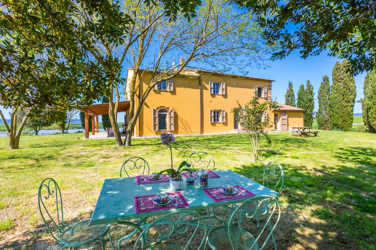 Villa Toscana rodeada de vegetación entre el mar y las colinas