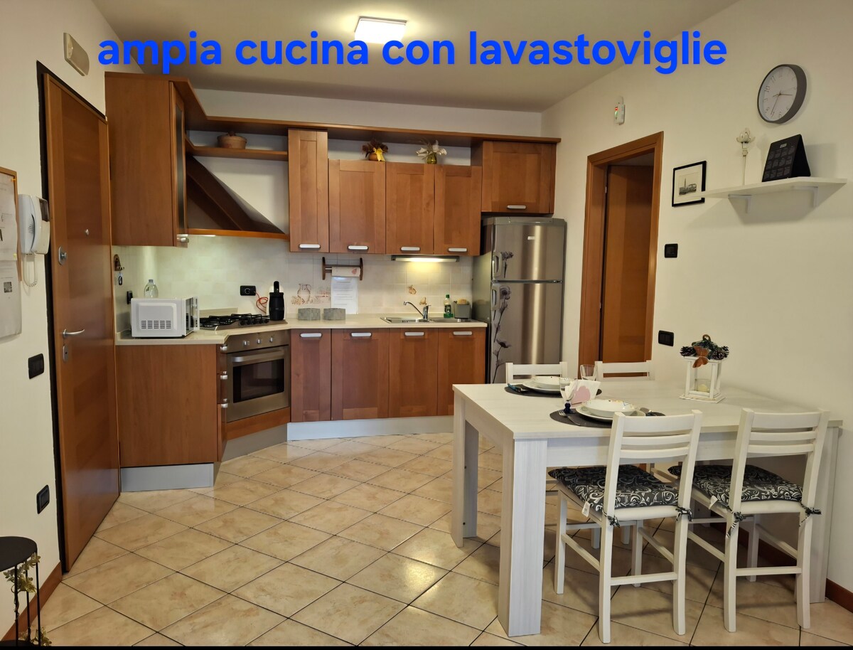 Nice apartment with air conditioning, washing machine and some outside space. 100 metres from a bus stop and a shop selling fresh fruit and vegetables and everyday groceries. If you are interested in local food and wines, we can give you some advice on nearby shops and farms. Larger supermarket open 7/7 less than 10 mins away (on foot). The town's castle (on the Prosecco Hills) is a 20 mins walk away. We live close by, we speak Italian but out sons help us welcome foreign guests.