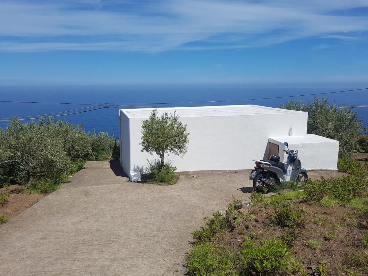 Casa indipendente in tipico stile Eoliano immersa nel verde, tra vigneti di malvasia e un uliveto tutto intorno. L'accesso alla casa è su strada privata illuminata, dotata di cancello, con un parcheggio al coperto. Doppio ingresso (cucina e camera) su ampio terrazzo con vista mare. La casa è dotata esternamente di un barbecue in muratura e lavello. Nel giardino si può godere di una fantastica doccia sotto un ulivo in totale privacy. La casa è composta da 1 camera da letto, 1 cucina, 1 bagno.