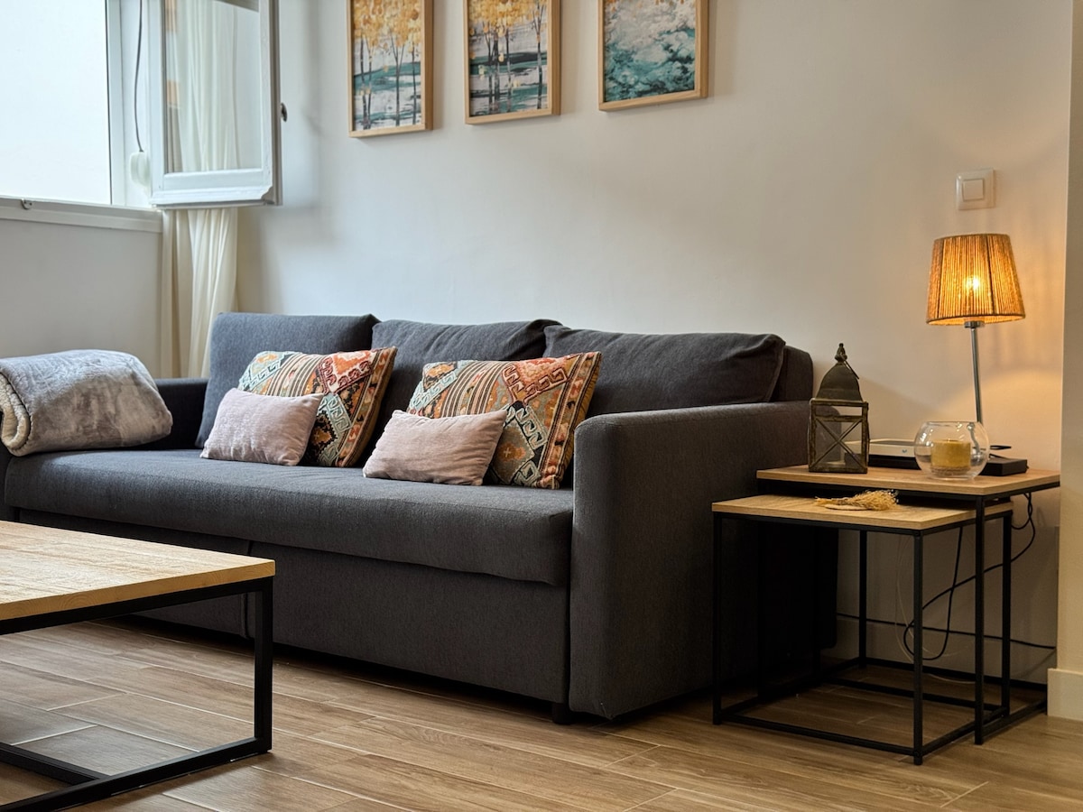 Precioso apartamento de 1 habitación con una cama de matrimonio y en un espacio contiguo en la misma habitación otra cama individual. Dispone de una amplio y cómodo salón con sofa cama. Suelos de madera, climatizado. En el centro de Cordoba y junto al Corte Inglés. Renovado y elegantemente decorado. Con todo lo necesario para disfrutar de su estancia. Perfecto para descansar, junto a la zona más monumental además de comercio y restaurantes. Quedara encantado con tu estancia