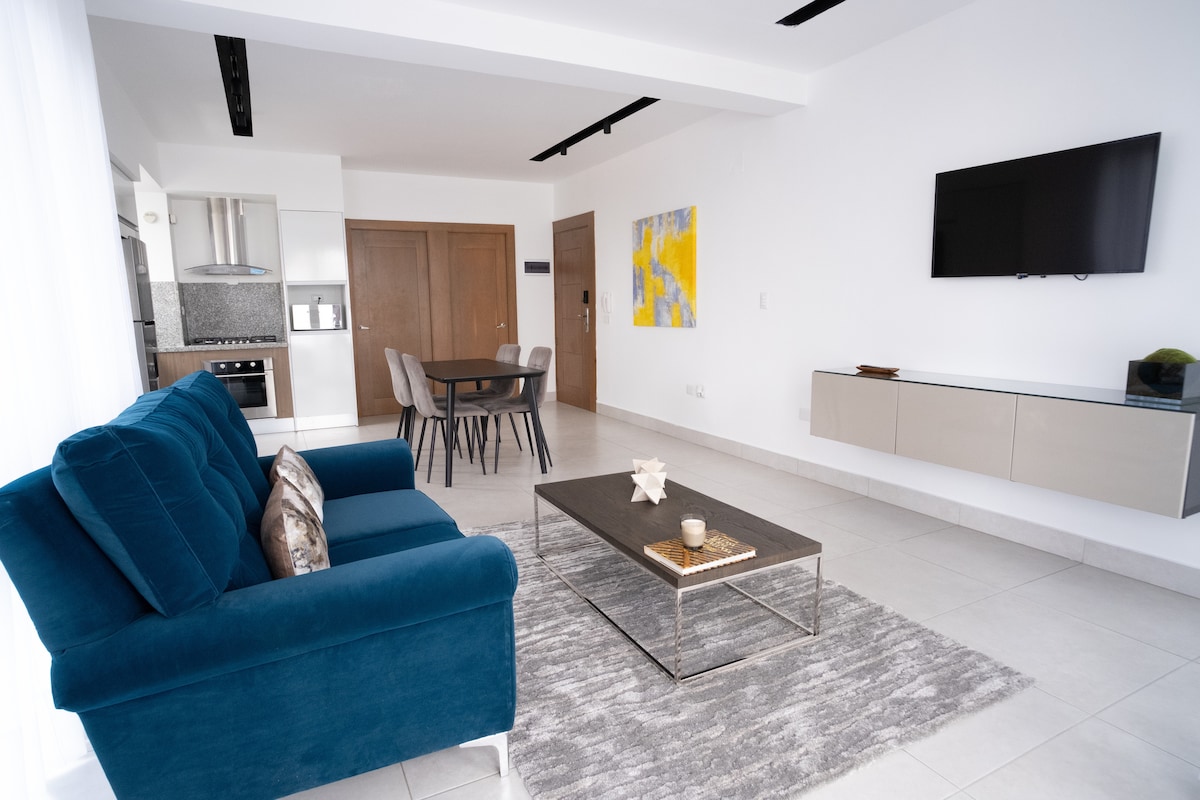 De una habitación, Moderno apartamento a estrenar con un diseño de interior minimalista y cómodo. Situado en el corazón de la ciudad de Santiago De Los Caballeros. Cerca del centro de la ciudad: Monumento, Agora Mall, restaurantes y Hospital/farmacia. Todo lo que necesite estará a menos de 5 minutos. Lugar Perfecto Para una pareja o viajero solo. A 15 minutos del Aeropuerto Internacional del Cibao.