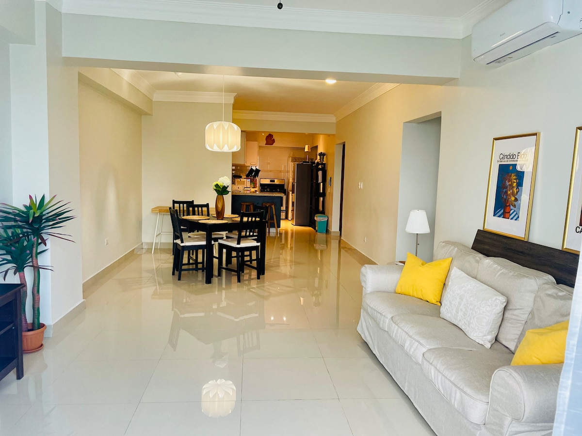 Este hermoso hospedaje esta ubicado en una de las zonas mas exclusiva , segura y centrica del país cerca de los mejores bares, restaurantes supermarket y demás; en dicho apartamento podrás disfrutarás de AC, wifi, smart TV, parqueo privado bajo techo, area común que cuenta con piscina infinita, gym/ring boxeo/cardio&pesas; también cuenta con una hermosa terraza equipada con sillas y muebles, jardín estilo zen, area de bbq y deck para tomar sol; Ven y disfruta!