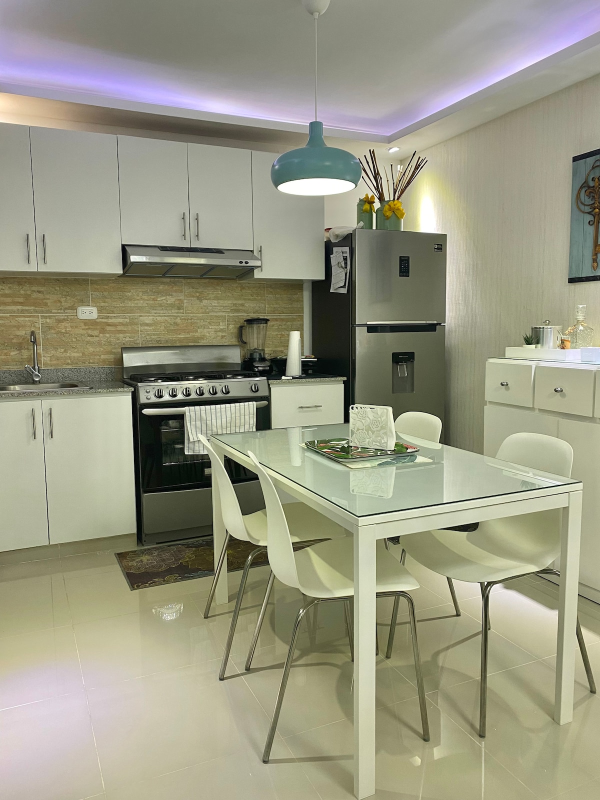 Relájate en este espacio tranquilo y elegante ubicado en Santo Domingo muy cerca de la Embajada de los Estados Unidos. una habitación con una decoración muy elegante y diferente . Tiene acceso a importantes Centros Comerciales, lugares de comida y Supermercados. Esta ubicado en el Residencial LP9 de Santo Domingo, es muy seguro y se pueden hacer caminatas al aire libre. A/C no funciona con el inversor Tomen en cuenta que no hay agua caliente en el apartamento. 4to piso sin ascensor