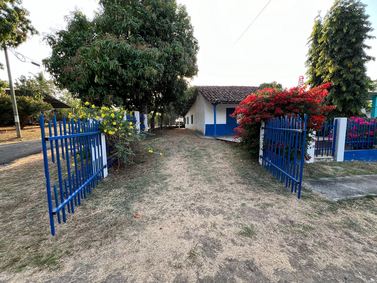 ¡Casa única en Los Santos! Este alojamiento es una casa de madera panameña de 60 años que ha sido renovada manteniendo su encanto. 2 dormitorios (dormitorio principal con cama tamaño king, segundo dormitorio con cama doble), 1 baño, cocina totalmente equipada con amplio salón y comedor. 1 oficina cerrada y segura con aire acondicionado con todo el equipo necesario (silla de oficina, monitor, teclado...), aire acondicionado solo en la oficina, resto de la casa con ventiladores. ¡Papaya, nuestra gata, vive en la casa!