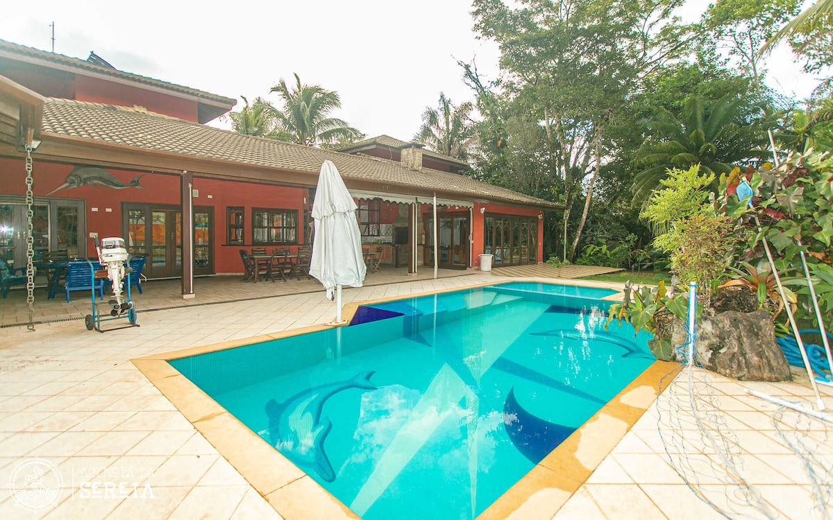 Bienvenidos a Casa das Águas: un rincón espectacular a orillas del río Una, frente a la playa, que promueve una experiencia única. Esta hermosa casa, completamente renovada, con refinamiento y elegancia, ofrece la comodidad de un hogar y la comodidad de un hotel exclusivo: limpieza y servicio diario, servicio de cocina - desayuno y almuerzo (no incluye alimentos), cruce a la playa con su propio barco y marinero, sillas y sombrilla Estar en la playa, literalmente, en menos de un minuto