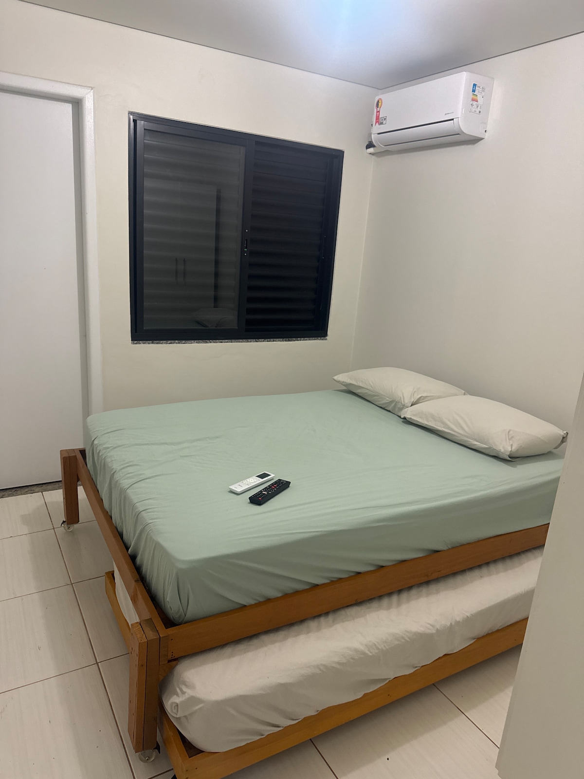 Apartamento 104 confortável e bem localizado, próximo ao centro da cidade. Possui um quarto amplo com cama king-size e colchão extra e ar-condicionado e smart tv 50’, banheiro com dupla ducha, sala com TV, Netflix e sofá, além de uma cozinha completa com micro-ondas, airfryer e utensílios. Conta com lavanderia onde tem máquina lava e seca, sacada com cadeiras e uma vista incrível para a natureza, ideal para momentos de paz. Toalhas e roupas de cama extras estão incluídas.