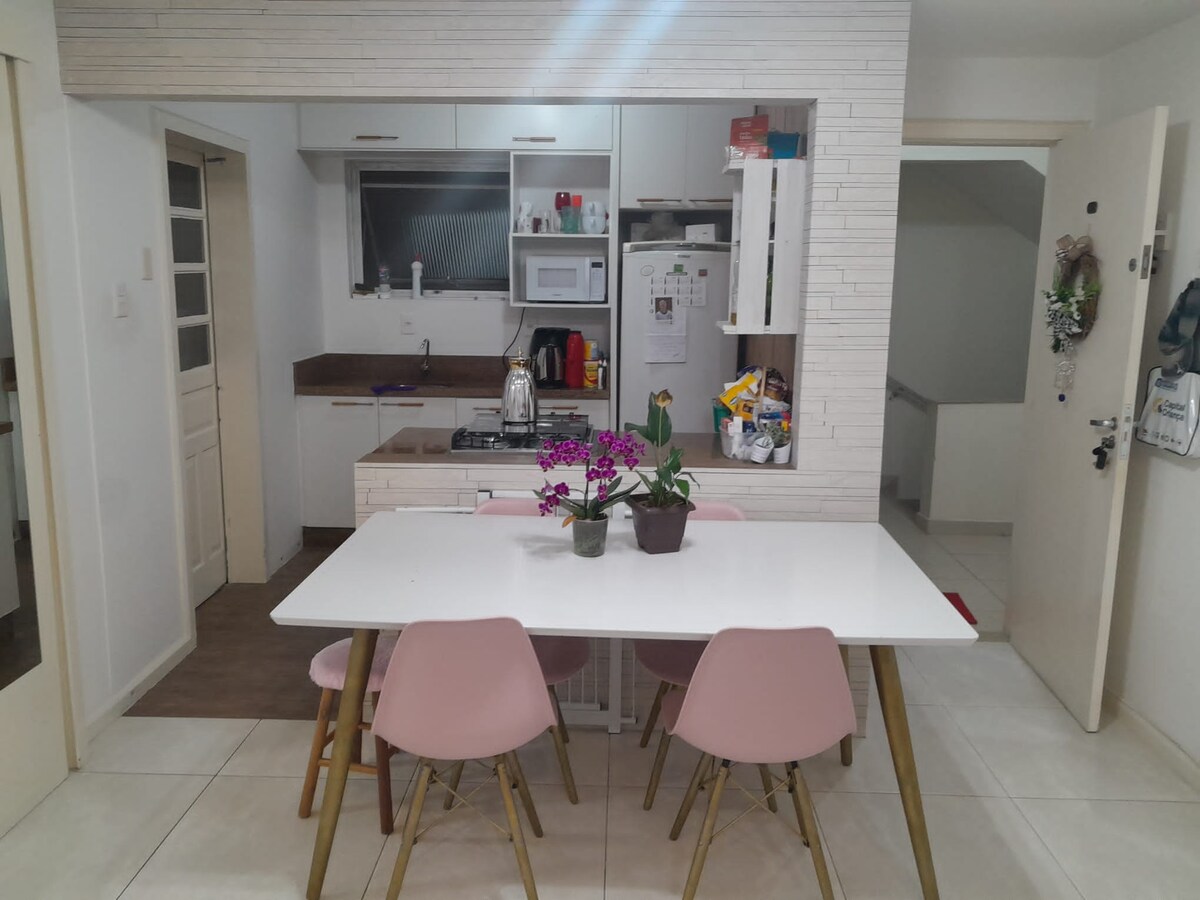 Disfruta de la sencillez en este lugar tranquilo y bien ubicado. Estudio ubicado cerca de un supermercado, farmacias, restaurantes, parada de autobús, plaza y tiendas en la región. Estudio bien equipado con wifi, cama doble y cama individual, armario, plancha y tabla de planchar, hervidor eléctrico, horno, microondas, estufa, heladera, alacena y utensilios de cocina que incluyen platos, cubiertos, ollas, sartenes, vasos y tazas, ventilador, etc. Todo esto para darte la bienvenida.
