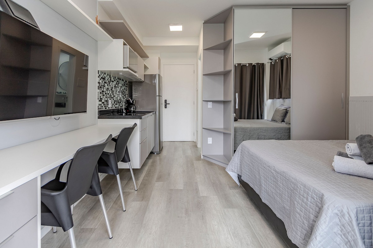 Calificación promedio: 5 de 5. 13 evaluacionesEstudio Brooklin con garaje, metro y tiendas.