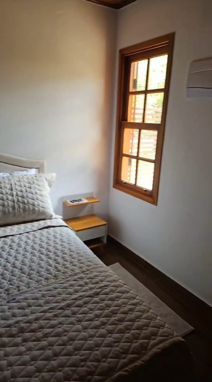 Quarto com 14m2, cozinha compacta privativa, com microondas, frigobar, forno elétrico 15L, cooktop 2 bocas, utensílios de cozinha para o preparo de lanches e pequenas refeições. Banheiro privativo, e entrada independente. Sem ar condicionado, mas possui ventiladores potentes. Quarto para NÃO FUMANTES, com multa de 250,00 para os que infringirem essa regra, mas poderão faze-lo na área externa da casa. Hospedagens acima de 30 dias poderão usar a lavanderia da propriedade, sem custo adicional.
