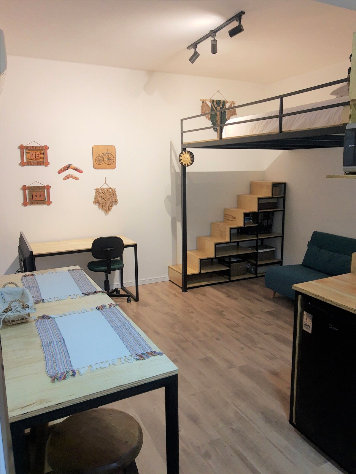 Maravilloso loft, decorado y equipado, con capacidad para alojar cómodamente hasta 3 huéspedes. Excelente ubicación en el centro de POA, edificio Coliving con sala de reuniones de conferencias, coworking, cocina, sala de estar y azotea con parrilla (espacios compartidos). Departamento en un piso alto, súper acogedor y totalmente equipado: cama tamaño queen MUY cómoda, sofá cama, artículos de cama y baño, cocina, aire acondicionado, SmartTV y WiFi.