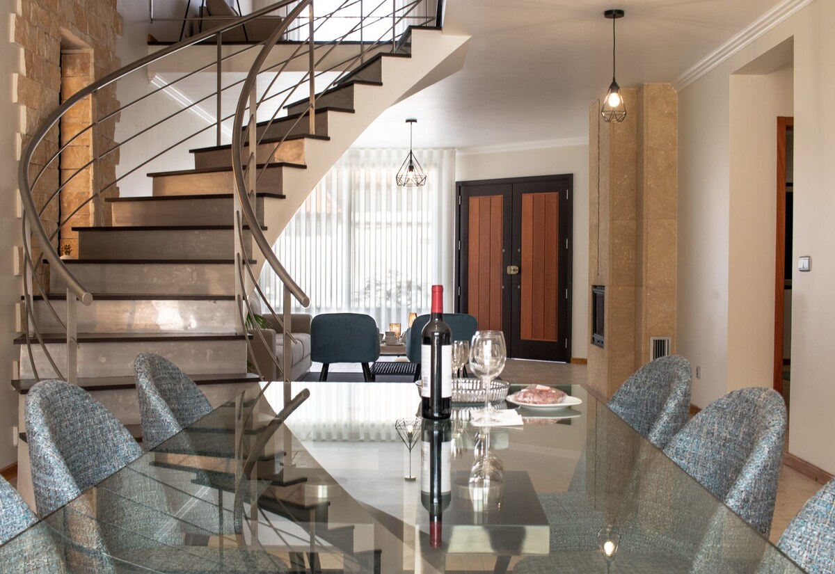The house is inserted in a paradise organic farm with fruit trees, vegetable garden and vineyard, as well as a beautiful garden. The interior is decorated with ancient pieces of oxbow and wine barrels, pieces that were used in another time in the farm for the varied activities.
