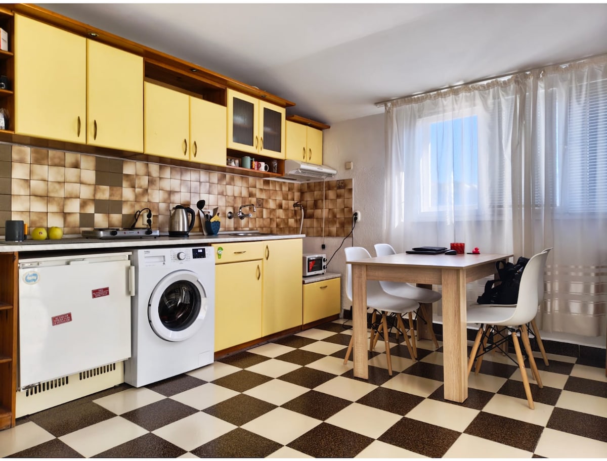 Welcome to our Charming apartment located in the heart of Blagoevgrad, Bulgaria. Nestled near a serene river, you'll experience a Peaceful atmosphere that allows you to unwind and recharge. Our cozy accommodation will provide you with a comfortable and enjoyable stay. The building itself exudes a calming ambiance ensuring a peaceful and pleasant stay. Whether you're a solo traveler, a couple seeking a romantic getaway, or a small group of friends or family, our space caters to all your needs.
