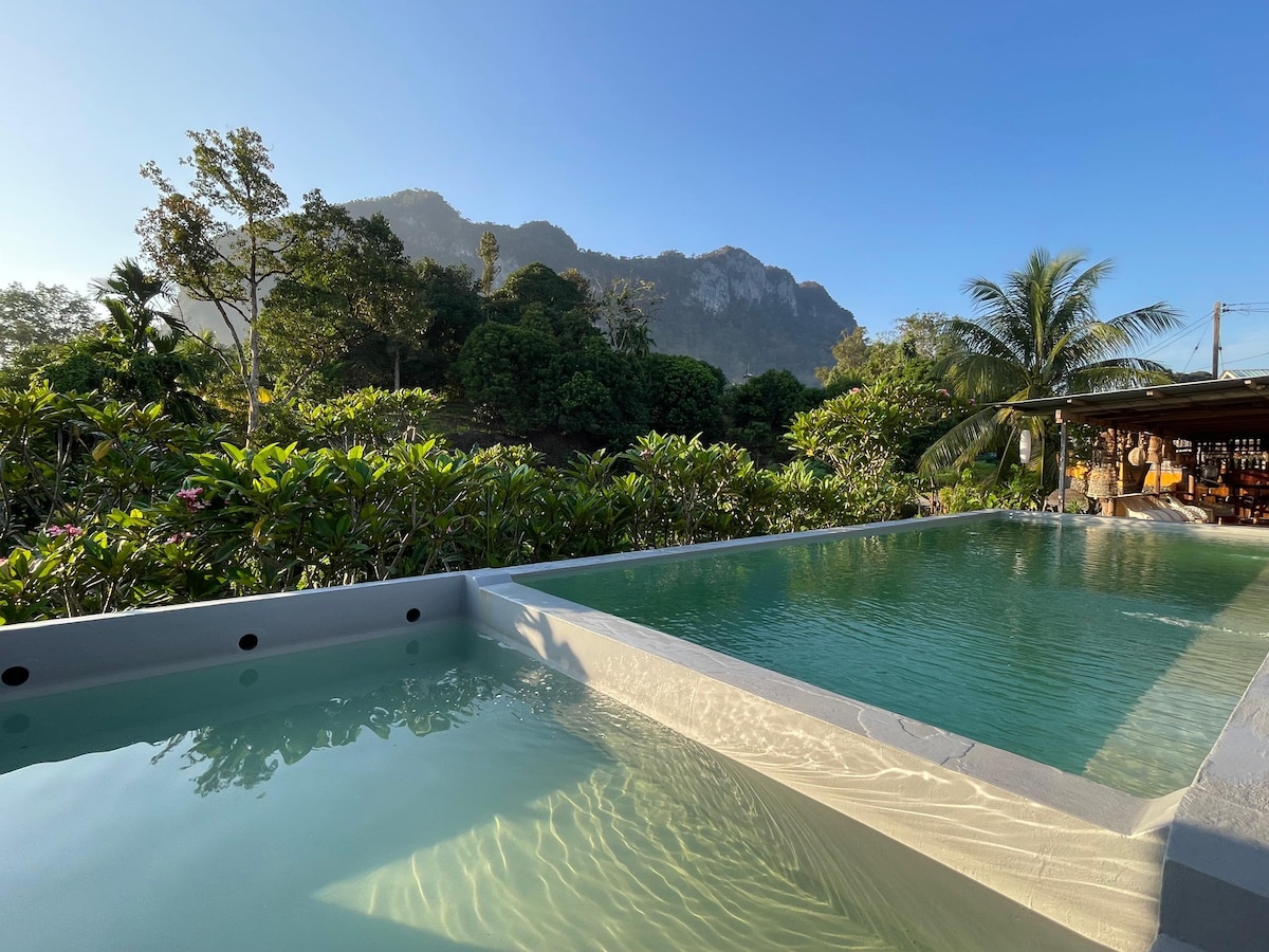 Villa 55, an enchanting wooden house, first took shape in 1997. Recently, in 2023, we embarked on an extensive renovation project, adorning it with a tropical theme while cherishing the timeless essence of the original structure. Our goal is to provide our guests with a haven where they can reconnect with nature, rejuvenate in the embrace of tranquility, and bask in the beauty that surrounds them.