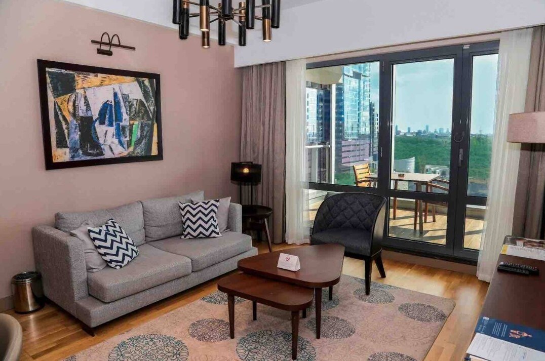 Welcome to our magnificent 1 bedroom apartment that offers a warm and comfortable accommodation experience in spacious units with forest views, right in the heart of Istanbul’s financial and commercial center. This apartment is furnished and equipped with state-of-the-art technology and contemporary design, and is only a few minutes away from Vadistanbul and Vadistanbul Mall, the city’s most prestigious area.