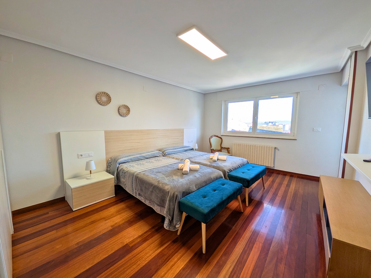 Disfruta de la comodidad y modernidad de este apartamento a tan solo unos minutos del CAMINO DE SANTIAGO. Tiene 4 dormitorios y 2 baños Conexión a Internet de alta velocidad y Netflix. Descansa siempre con colchón y almohadas viscoelásticas, un buen edredón y mantas. El barrio dispone de supermercados, comercios, restaurantes, lavandería, farmacias, cafeterías.