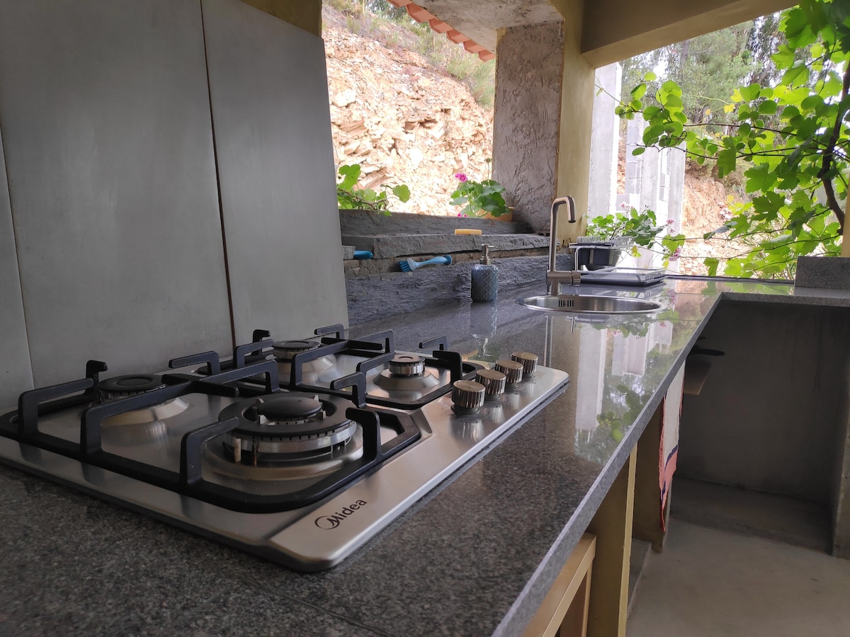 Casa de huéspedes con dormitorio espacioso con cama doble (180x200) y un dormitorio con cama individual, entrada propia, pasillo, baño privado y terraza situada en una parte privada de nuestra quinta. La espaciosa terraza cubierta tiene una cocina exterior. Situado en el borde de un pequeño pueblo, a 21 km de Castelo Branco en una hermosa zona adecuada para practicar senderismo. Varias playas naturales cercanas, más cercanas a 8 km. Paseo a caballo, sin experiencia, a 9 km.
