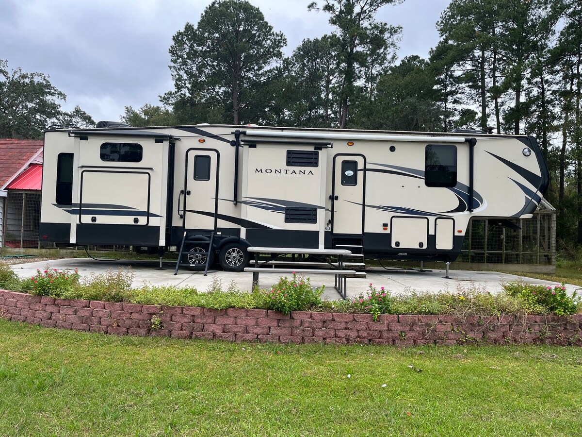 Enjoy the natural beauty surrounding this 5th wheel at our 150 acre plantation. This property is part of one of the oldest historic rice plantations off of the New River in SC . This spacious 5th wheel is the perfect getaway for you to relax. Plus it’s location makes it easy for shopping, golf and restaurants. You are only: 30 min to Hilton Head beaches and golf 15 min to Old Town Bluffton 10 min to Savannah GA 15 min to Pooler GA outlet shopping