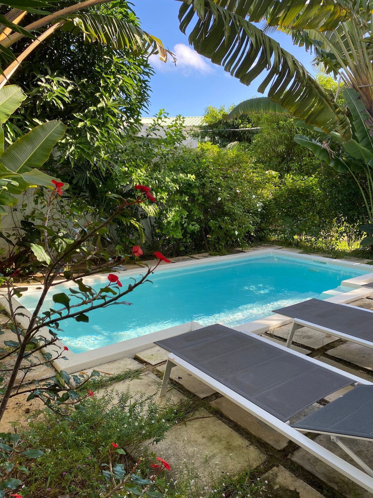 ¡Bienvenido! Nuestra propiedad es ideal para huéspedes que valoran la paz, la comodidad y la total privacidad. Propiedad ✅ totalmente privada: no hay espacios compartidos, con entrada privada propia. Jardín ✅ privado y piscina: disfruta del espacio al aire libre con completo aislamiento. Sin vista exterior, sin interrupciones. ✅ Apto para familias: excelente para familias conservadoras. ✅ Tranquilo y pacífico: un entorno sereno sin perturbaciones.