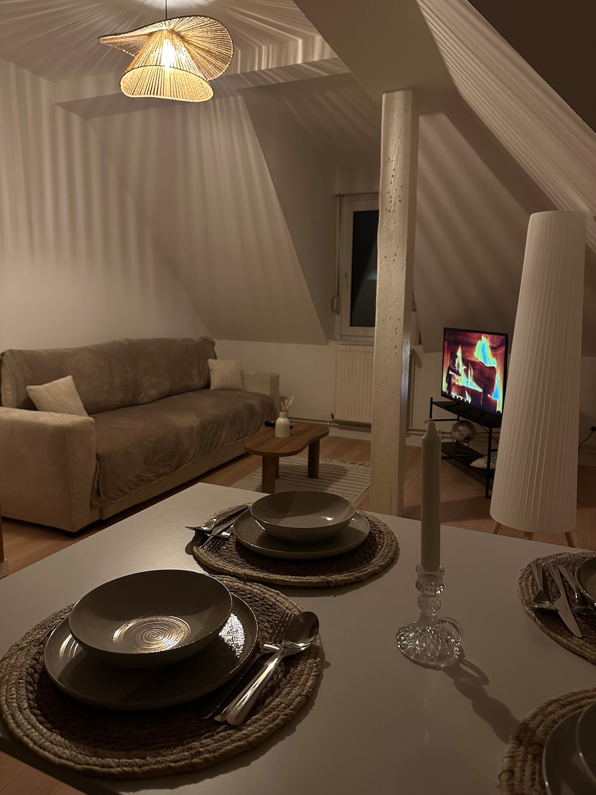 Welcome to MATT – Apartments in Villingen, set high above the city and at the edge of the Black Forest. Our spacious penthouse features three rooms and a nearly 60 m² rooftop terrace with views over the old town and into the Black Forest. • Panorama rooftop terrace (approx. 60 m²) • 1 × king-size bed & 1 × queen-size bed • High-quality sofa bed • Fully equipped kitchen • Coffee machine • Fast Wi-Fi • Washer-dryer • Smart TV • Workspace • Free parking