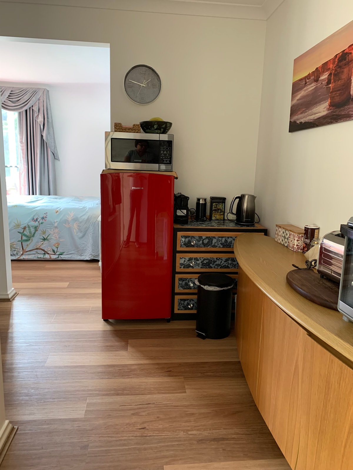 Centrally located self-contained 1 Bed Studio with private bathroom, kitchenette and laundry. Next to a Karri reserve with outdoor sitting area. Easy 5 min walk into town with private entrance and plenty of parking. Everything two people need for a relaxing Denmark base. Features reverse cycle AC, queen bed, smart tv, lounge, tea/coffee, cereals, filtered water, BBQ, games, books & gym. The Studio is adjacent to the main house but private at the front of the property, you won't be disturbed.