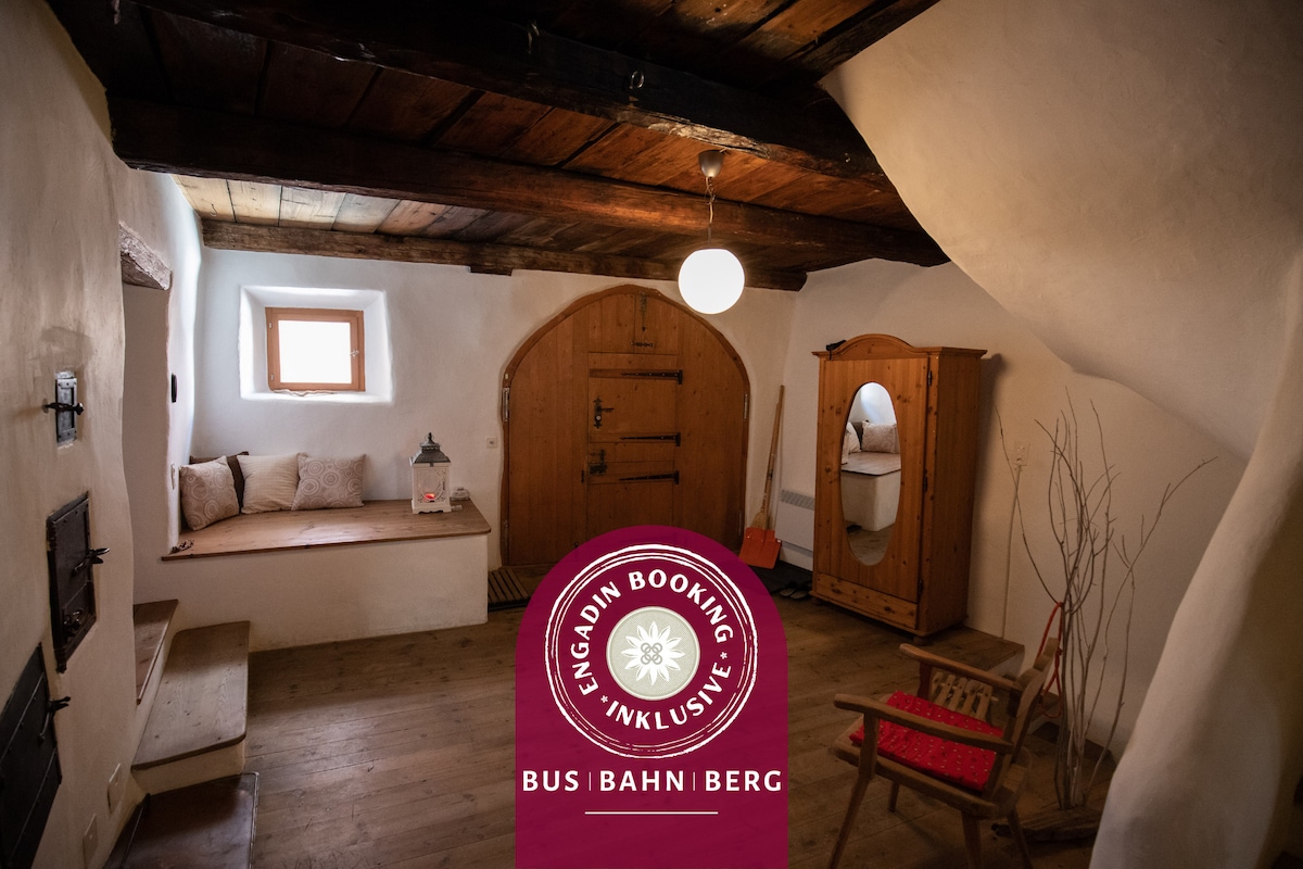 Acogedor apartamento en una antigua casa de estilo engadinés con un dormitorio histórico (antigua sala de audiencias) en la plaza del pozo del pueblo, cerca de la tienda, la estación de tren y el restaurante. Punto de partida ideal para practicar senderismo, ciclismo y deportes de nieve. Los productos de la granja, como el queso, los huevos y la miel, se pueden comprar al anfitrión. Bajo petición, se puede servir el desayuno. La tarjeta de invitado de 5 CHF-/día debe pagarse en el hotel.