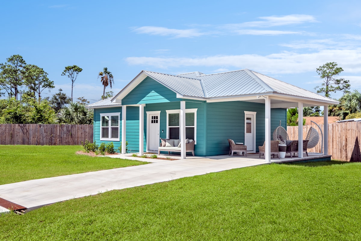 Message us for special winter discount! Enjoy a relaxing experience at our charming, perfectly located 2 bed, 2 bath, beach bungalow steps away from the most beautiful beaches in Florida Located only 1 block from the white sandy beaches of PCB. If you get sick of the beach (unlikely), you are a short distance from great bars, restaurants, and the beautiful St. Andrews State Park Schooners, Busters Pub, & Newby's are just around the corner making for a great walk home after dinner and drinks