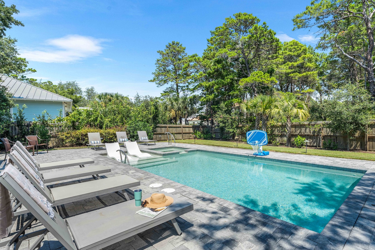 A pocos pasos de las prístinas arenas de Seagrove Beach, nuestro refugio de playa ofrece la mezcla perfecta de elegancia y comodidad familiar. Cuenta con dormitorios elegantemente decorados y una sala de estar con sofá cama. Una cocina totalmente equipada y parrilla para preparar comidas. Después de la playa, ¡enjuágate en la ducha al aire libre y luego disfruta de la piscina! Ubicada en un callejón sin salida privado, nuestra casa de campo ofrece tranquilidad a poca distancia a pie de restaurantes locales para garantizar que los recuerdos junto al mar de tu familia se creen sin esfuerzo.
