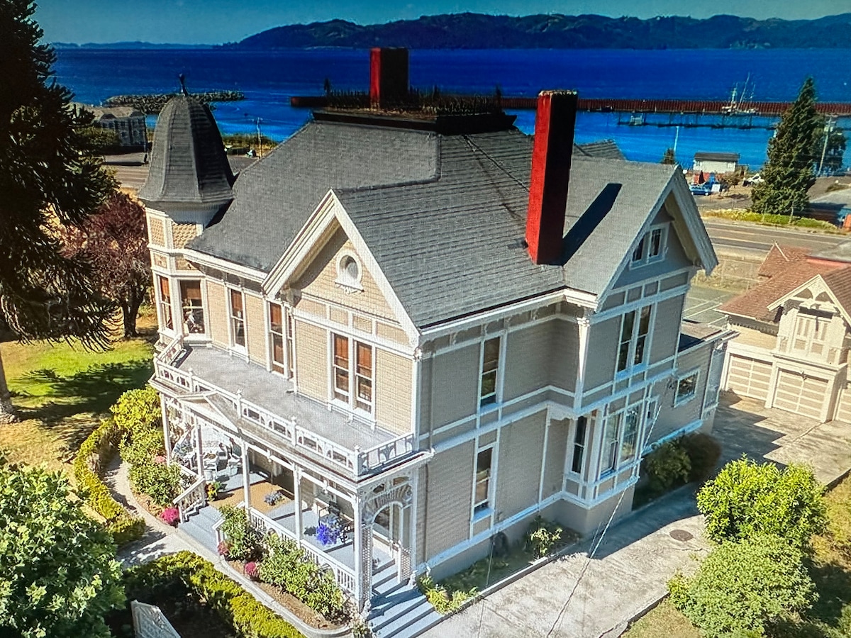 FILM FAN FAVORITE: Romantic adjoining Bridal Suite & Groom's Room Why just visit the Goon Docks, when you can stay here? The Goonies House is down the block, Kindergarten Cop's school is next door and the Short Circuit Bridge is visible in the distance, what more could a Film Fan want? You'll have 2 adjoining bedrooms, 1.5 private bathrooms + your own private sitting area + gas fireplace on the main floor of this 1888 Mansion for your visit to the Goon Docks... and free on-site parking too!